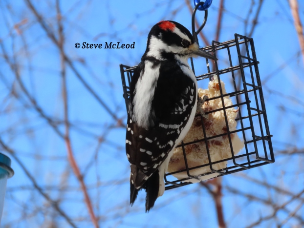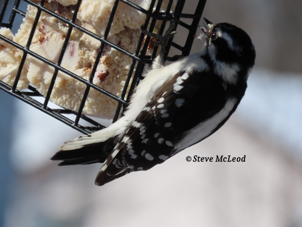 Male Downy Woodpecker at the suet.