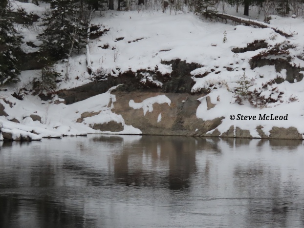 He lifted his head out of the sawdust and began wiping it off. All he said was, “bonehead!” Then he explained that it was him standing in front of the door when I came ramming my way inside. Actually I was just pushing, dad always liked to exaggerate. “You should be more careful,” I said, “after all, you knew I was coming in with the wood.” Dad just looked at me. “Bring in some more and put them over there,” he pointed. Off I went, and while outside the Canada Jays came by, and since our lunch was in the cooler outside I quickly got part of a wiener out to feed them.