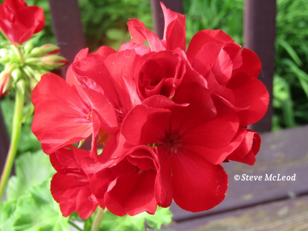 1. Red geraniums add a splash of color on the deck in the summer time and are easy to grow. Thank you for sharing, Steve. Enjoy the remainder of the weekend! God bless you!