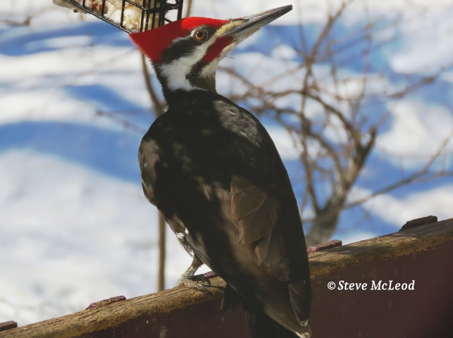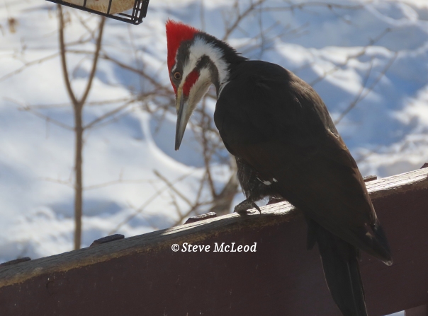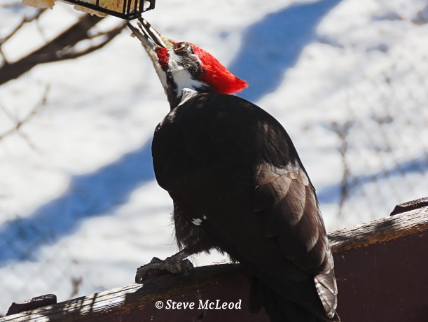 Male Pileated Woodpecker, likely thinking “dropped that nice big piece in that dirty snow”