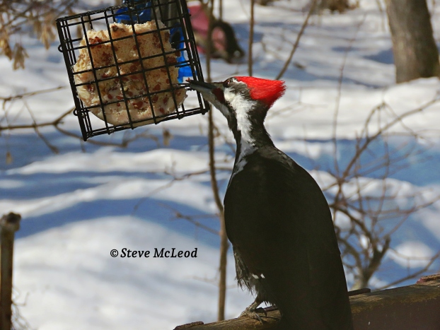 Hello everyone! Just thought I would share a couple more pics of that nice Pileated Woodpecker that was around for several days. These were pics from last Monday. He has not been around for a few days now, but he might come back. Have a great week everyone and God bless!