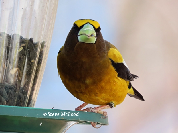 When that sun hits the tops of the trees, the birds show up and begin their chorus of lively singing. It is truly wonderful to listen to each morning. That is solitude. There more than 53 Evening Grosbeaks, that is as high as I could count before they all flew off. But there were still more in the trees. Normally they would have gone and spread out by now, searching out their own nesting territories.