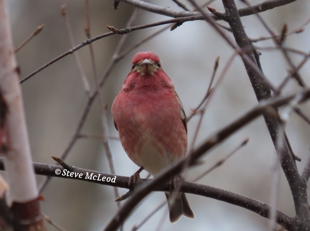 Male Purple Finch also looking. The top featured image is a Junco looking at me.