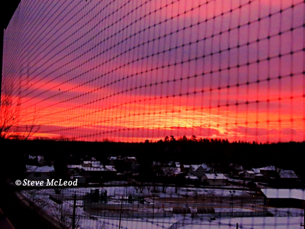 This shows the main part of the sunrise, but it is through the security netting. The color did not last long this time, but it sure was beautiful.