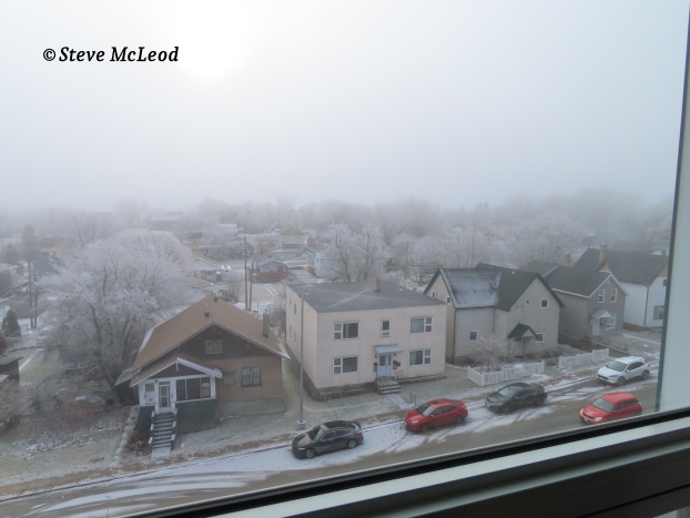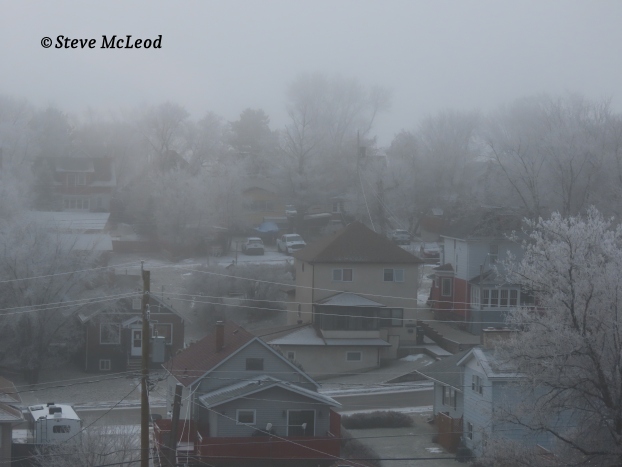 Even the white on the ground seen in those pictures is frost on the grass, not snow. I will show a couple pics today of the ice fog we had that produced all that beautiful frost. When I took the pics of the fog, it was not so bad as it had been when I could barely see across the street.