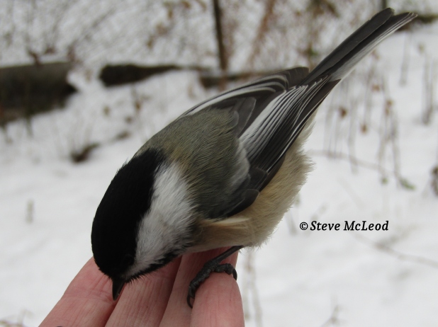 Black-capped Chickadee on my hand, 2 winters ago.
