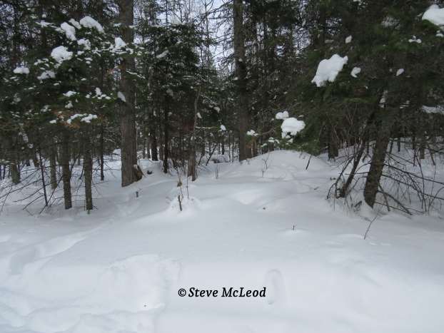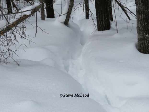 This is a deer trail through the snow which was about 30 inches, about 75cm, deep at this spot.