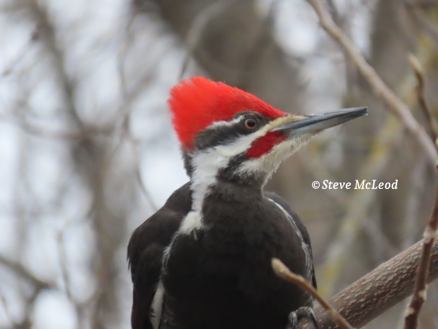 There are also the bigger birds, like the Pileated Woodpecker, that stay around all year and will even come to bird feeders in the winter months. They are about the size of a crow and are beautiful birds.