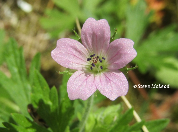 Bicknell’s Cranesbill. In the Geranium family, it is about 1/4 inch (6mm) across.