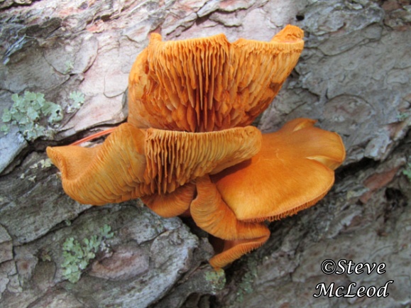 Greetings everyone! It is a beautiful, sunny day here with a temperature of 39F (4C). It certainly looks nicer than that looking out the window, but going outside makes me realize in a hurry that it is a bit on the chilly side. For me at least. It will be interesting to see what our winter will be like this year. Anyway, today we have another mushroom to share with you, the Orange Mock Oyster.