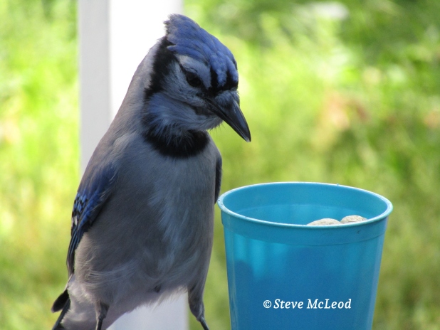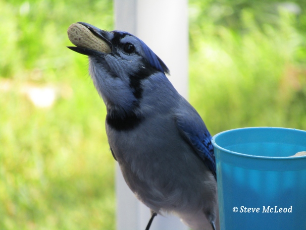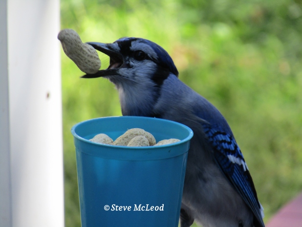 “I knew there were peanuts in here,” says Baxter blue jay.