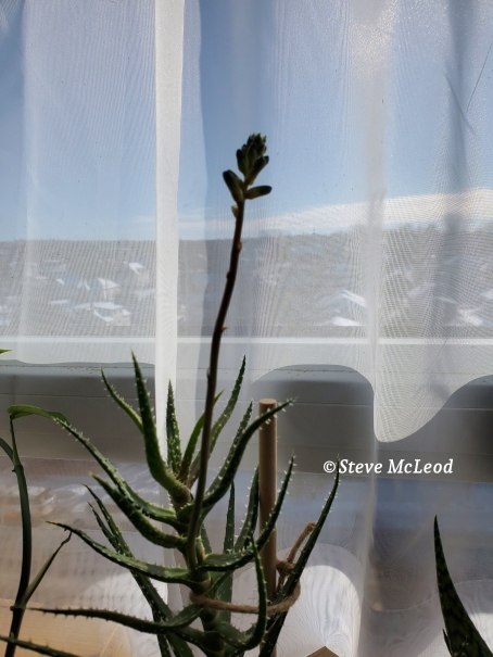 They are small types that stay small, perfect for small spaces. They are called Echeveria, or more commonly called ‘wax plant.’ They are succulents and a type I have never grown before, so we shall see how I do with them. Two more of my aloe plants are getting flower buds. They are Tiger Aloe and are growing very nicely and two days ago I noticed these flower buds coming up.
