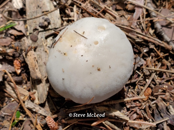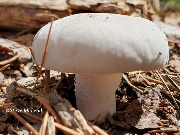 The caps can grow from 2 to 7 inches in width (5 to 17.5cm). The cap is rolled under when the mushroom is young and flattens out as it matures. The stem is quite thick and white and can grow up to 4 inches (10cm) long. The mushroom in my photo has a cap that is just over 3 inches (8cm) wide and the stem is less than 3 inches (7cm) tall.