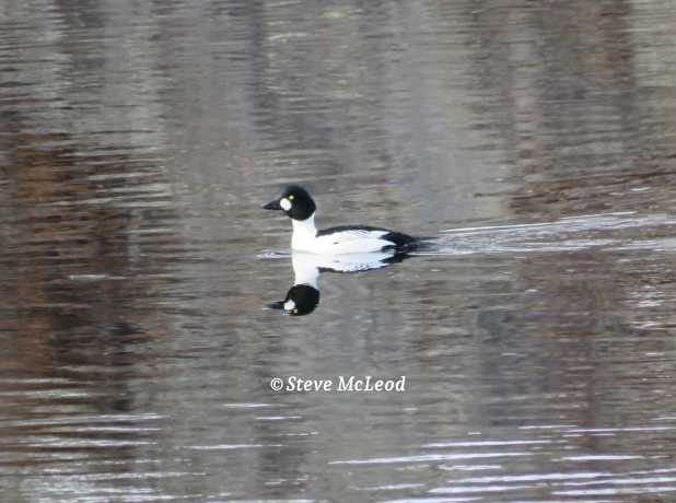 Common Goldeneye reflecting on the river.
