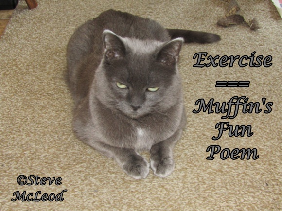 Exercise There my human likes to sit, That’s not the way to keep fit. He is comfy in our chair, Time to get him out of there. I will jump onto his lap, Take my tail and give him slap. That will make him… Continue Reading “Exercise…Muffin’s Fun Poem.”