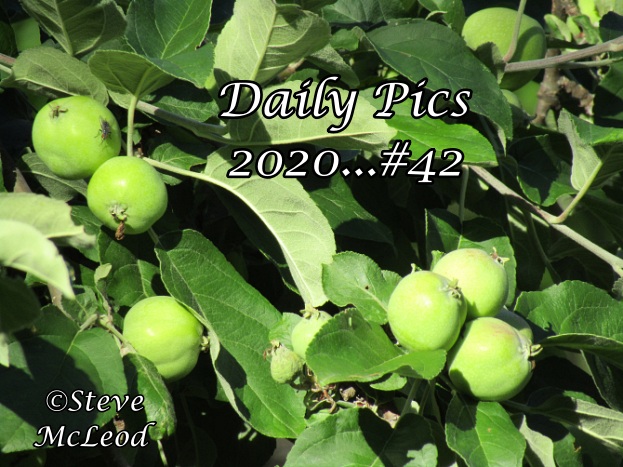 Some nice bright red berries on a summer morning, though I have no idea what they are or if they are edible. The birds, however, certainly enjoy eating them.