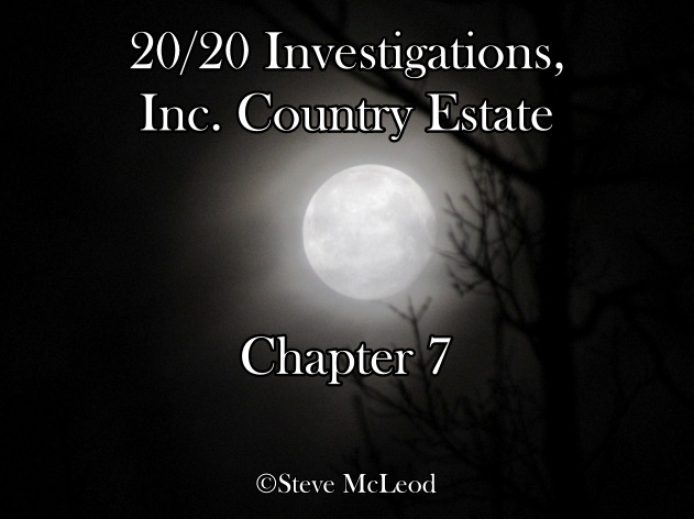 I already knew what I was going to find, I could tell when that flash of lightning lit up the room. When I got to him, Dave had been tied to a board to make him stand up, he was dead. I dragged him… Continue Reading “20/20 Investigations, Inc. Country Estate, chapter 7.”